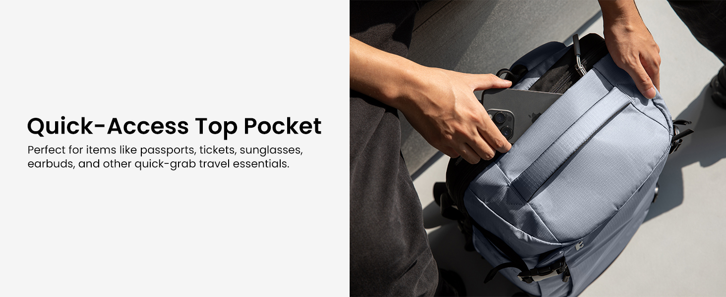 Ngăn chính được thiết kế kiểu vỏ sò, cho phép bạn đóng gói đồ đạc như một chiếc vali, dễ dàng sắp xếp quần áo và các vật dụng lớn. Ngăn đựng laptop chuyên biệt có đệm lót mềm mại, có thể chứa vừa laptop 16 inch và iPad 13 inch. Ngoài ra, các túi phụ phía trước, phía trên và hai bên hông giúp bạn dễ dàng lấy những vật dụng cần thiết như hộ chiếu, ví hay chai nước.
