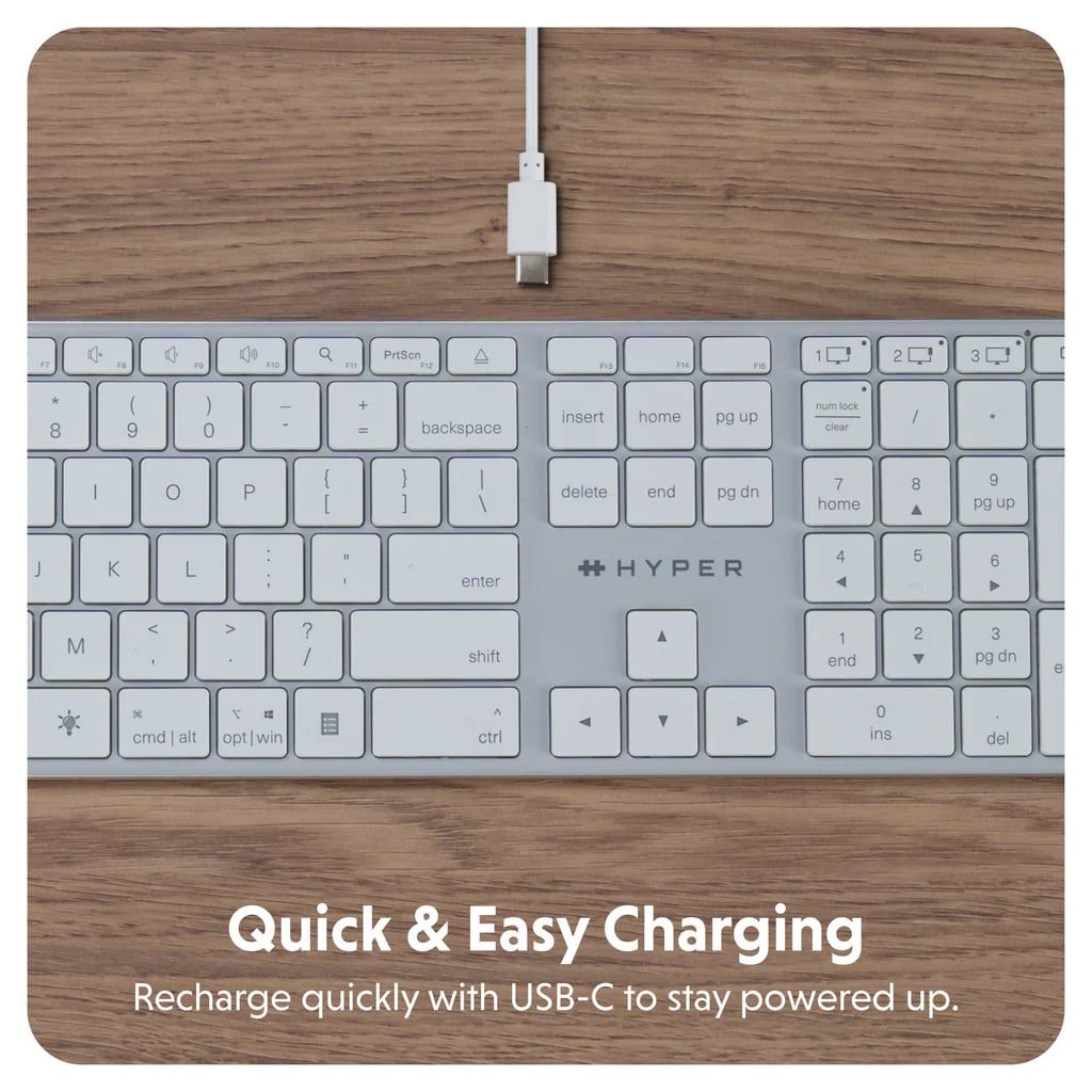 Bàn phím Bluetooth® Full-Sized HyperSpace™ mang đến mọi tính năng bạn cần trong một thiết kế mỏng nhẹ và di động. Đây là công cụ năng suất tối ưu của bạn, nổi bật với khả năng kết nối đa thiết bị liền mạch qua Bluetooth 5.0 và được chế tạo từ 85% vật liệu tái chế sau tiêu dùng. Với khả năng tương thích phổ quát cho tất cả các hệ điều hành chính, góc nghiêng gõ phím thoải mái cho cả ngày dài sử dụng và các phím có đèn nền điều chỉnh được để gõ rõ ràng trong mọi điều kiện ánh sáng, chiếc bàn phím này dễ dàng thích ứng với quy trình làm việc của bạn. Thiết kế mỏng, bàn phím số đầy đủ và khả năng sạc nhanh qua USB-C tạo nên sự cân bằng hoàn hảo giữa tính di động và chức năng.