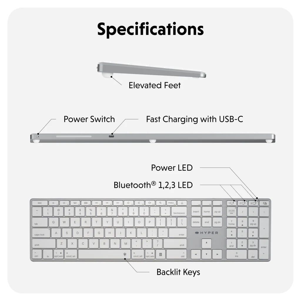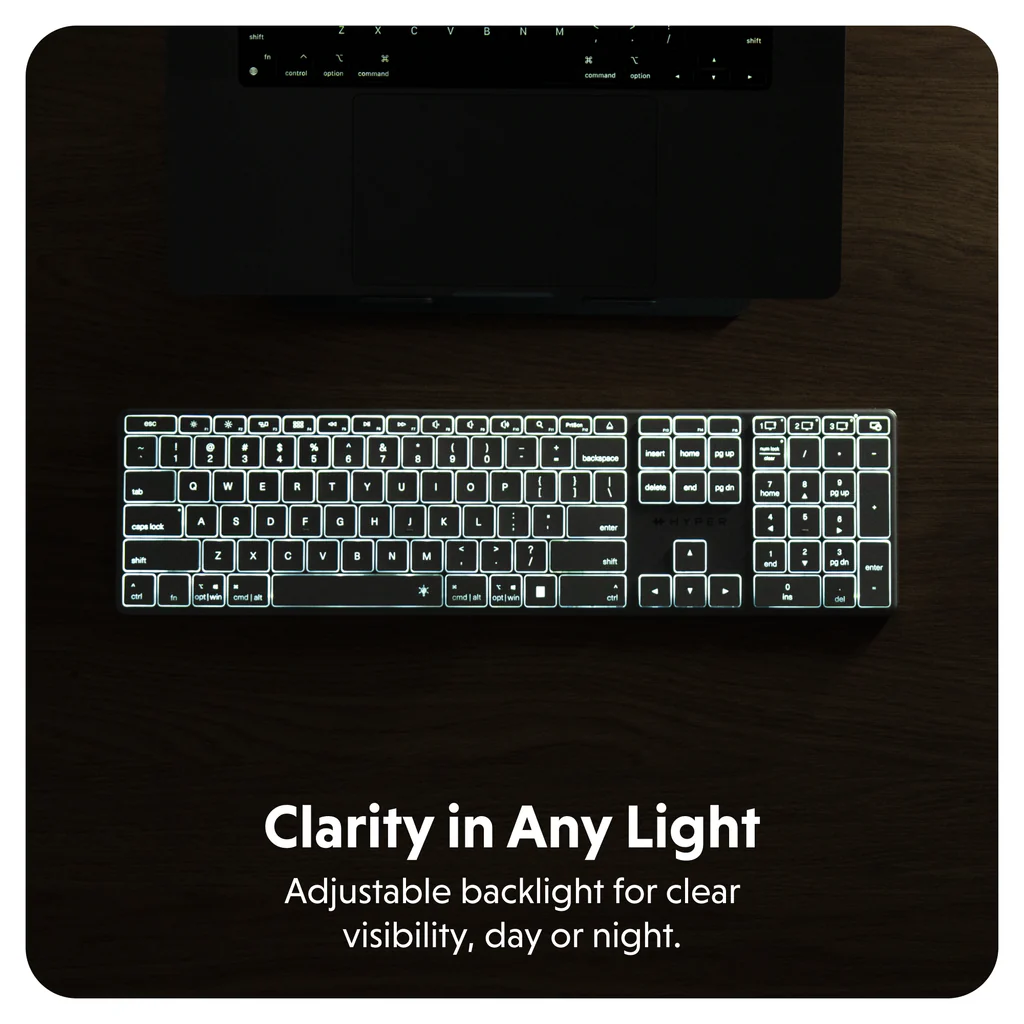 Với cấu trúc nhôm cao cấp và thiết kế full-size, bàn phím HyperSpace phối hợp liền mạch với chiếc MacBook của bạn. Nó cũng được trang bị đầy đủ các phím chức năng và điều khiển đa phương tiện tương tự như bàn phím của Apple.
