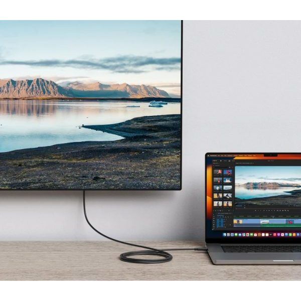 Dài Hơn Để Dễ Dàng Sử Dụng Cáp HyperDrive 2M Thunderbolt 4 có chiều dài lớn hơn, giúp bạn kết nối với màn hình Thunderbolt với độ phân giải cao một cách dễ dàng.