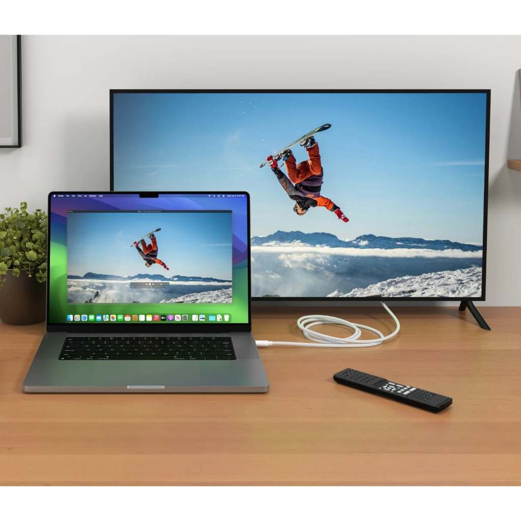 Được thiết kế với tính tương thích phổ biến, cáp này hỗ trợ liền mạch mọi thiết bị USB-C* và các hệ điều hành chính. Dễ dàng chia sẻ media và nội dung từ MacBook, máy tính xách tay PC, iPhone 15, Android, iPad và các thiết bị máy tính bảng USB-C khác. * Thiết bị USB-C hỗ trợ Chế độ DP Alt Mode.
