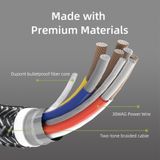 Sử dụng vật liệu dù Nylon bọc 2 lớp dù siêu bền, bên trong lõi đồng được bọc bởi chất liệu Alumium nguyên khối, sử dụng lõi đồng nguyên chất với tiết diện dây dày không bị tăng trở kháng, nhiễu điện từ (EMI: Electro magnetic interference) nên giúp tốc độ sạc nhanh hơn