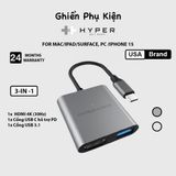 Hyperdrive 4K HDMI 3-in-1 USB-C hub hỗ trợ xuất từ 1 cổng USB-C của Macbook Pro 12, 13″15″ 2016/2017 hay các dòng Laptop sử dụng USB C ra 3 cổng cơ bản thông dụng:
