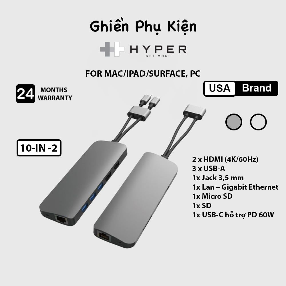 HYPEDRIVE VIBER 10-IN-2 USB-C HUB xuất từ 2 cổng USB-C ra 10 cổng: