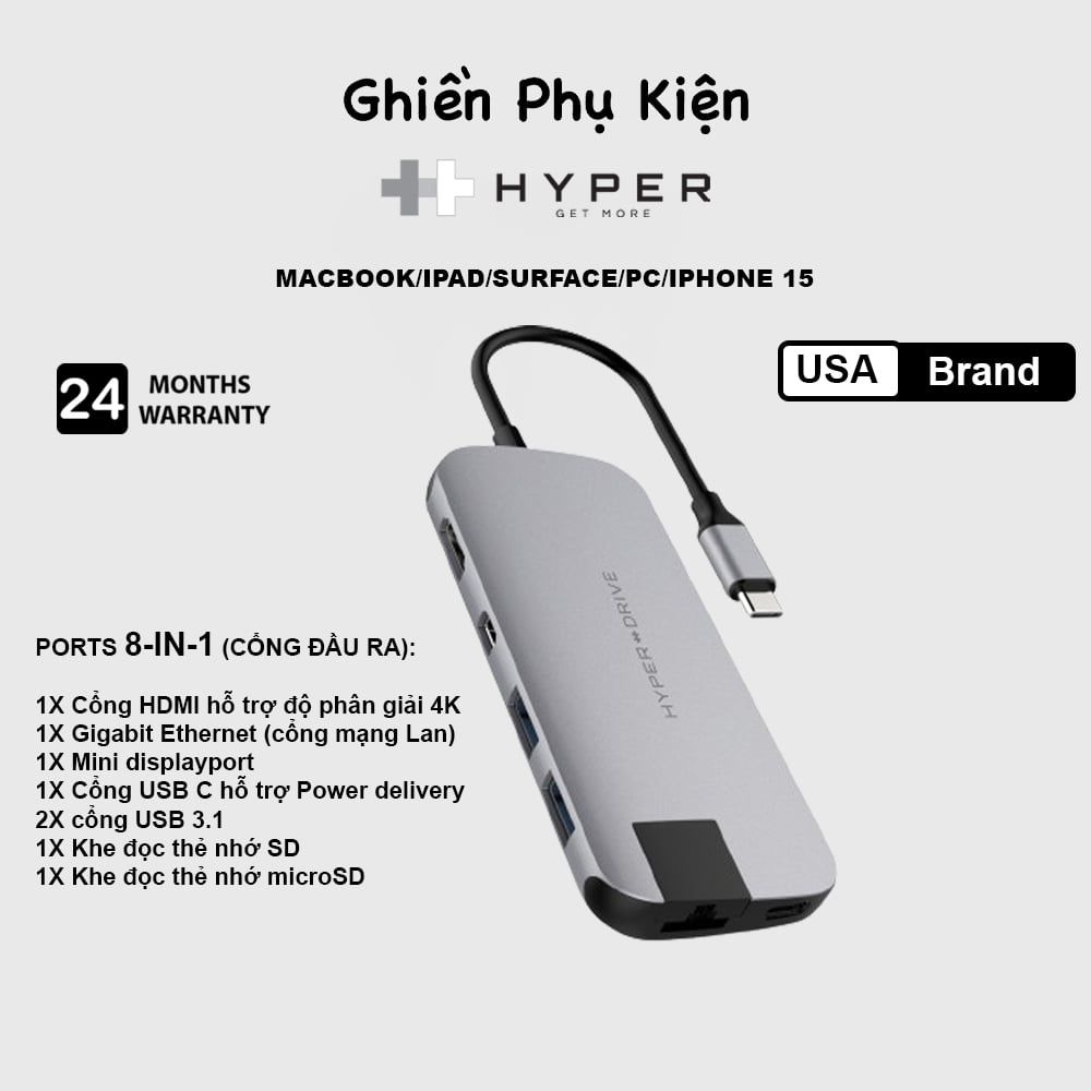 #Hyper #HyperDrive #Ghienphukien #USB-C-Hub #Hub-8-in-2 #USB-C-HUB-Solo #GN21D #congchuyenyper #congchuyenhyperdrive #macbook #laptop #pc