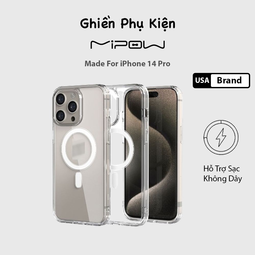 Ốp Mipow Hỗ Trợ Sạc Không Dây Tempered Glass trong suốt hỗ trợ sạc với vòng tròn nam châm tinh tế phía sau mặt ốp giúp điện thoại hít cứng cáp hơn.