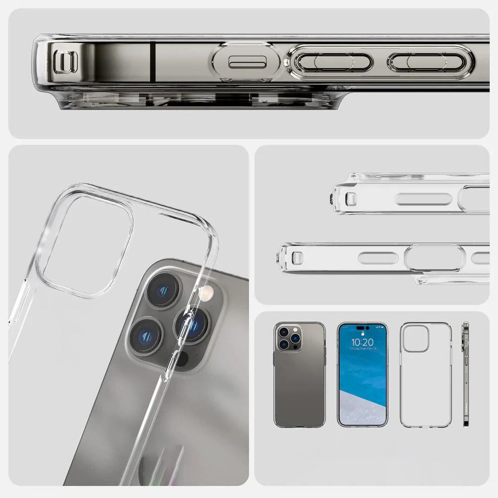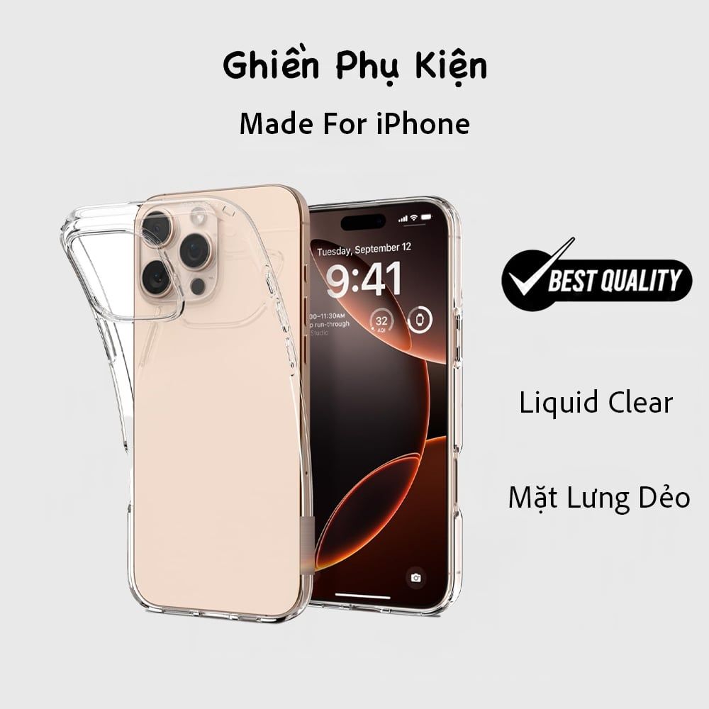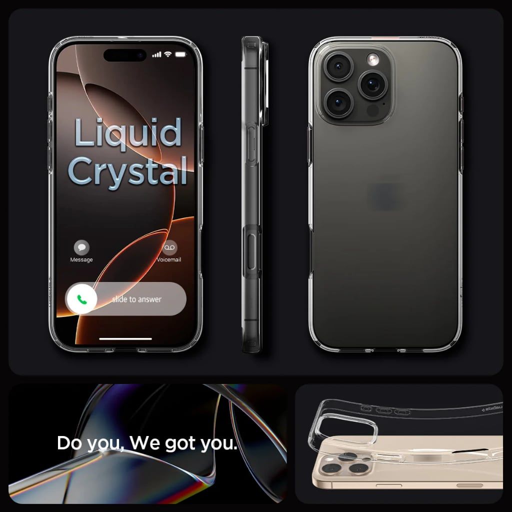 Ốp lưng Liquid Crystal Clear được làm từ chất liệu TPU trong suốt, có thiết kế mỏng nhẹ, không gây dày cộm cho điện thoại. Ốp lưng có phần viền TPU cao hơn camera của điện thoại, giúp bảo vệ camera khỏi trầy xước khi đặt điện thoại xuống. Các nút bấm của ốp lưng được thiết kế chính xác, cho cảm giác bấm nhạy.