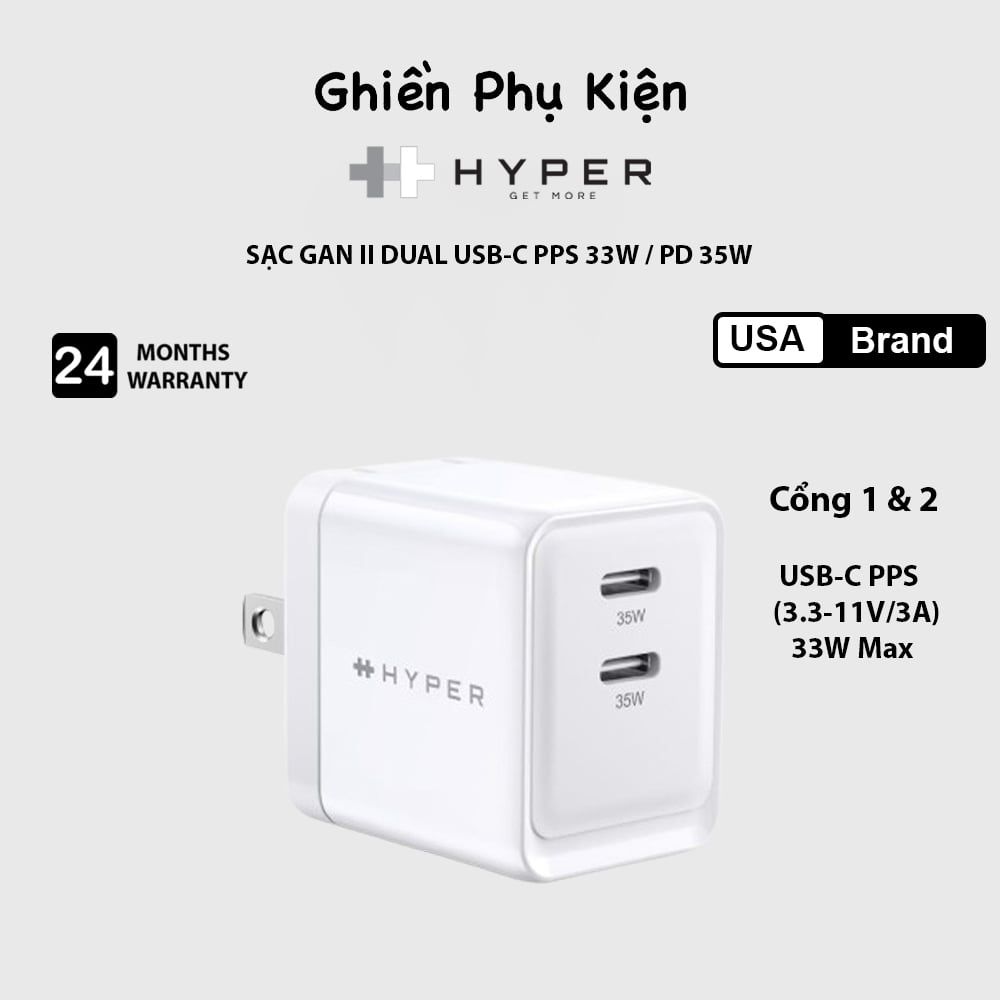 Sạc Hyper Gan 35W 2 cổng USB-C đã được thử nghiệm trong phòng thí nghiệm, hiệu suất điện năng 95% hàng đầu trong ngành điện tử và hoạt động ở nhiệt độ thấp chỉ 25*C.