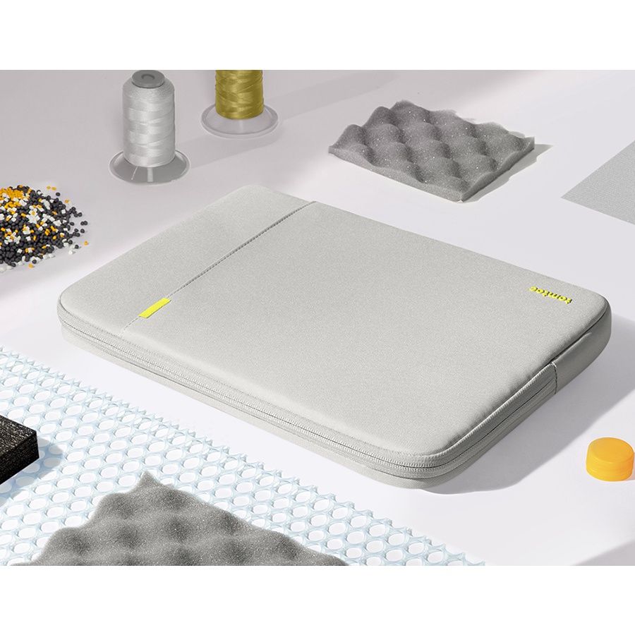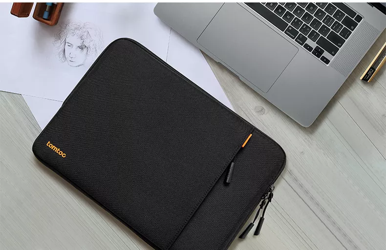 Vẻ ngoài đơn giản và sạch sẽ được làm bằng vật liệu tái chế chống mài mòn & chống nước ở bên ngoài, một lớp lót và đệm dày sang trọng ở bên trong và trên cùng là một đường gờ bảo vệ mềm mại xung quanh dây kéo cung cấp khả năng bảo vệ 360 độ bền bỉ đáng tin cậy cho thiết bị của bạn.