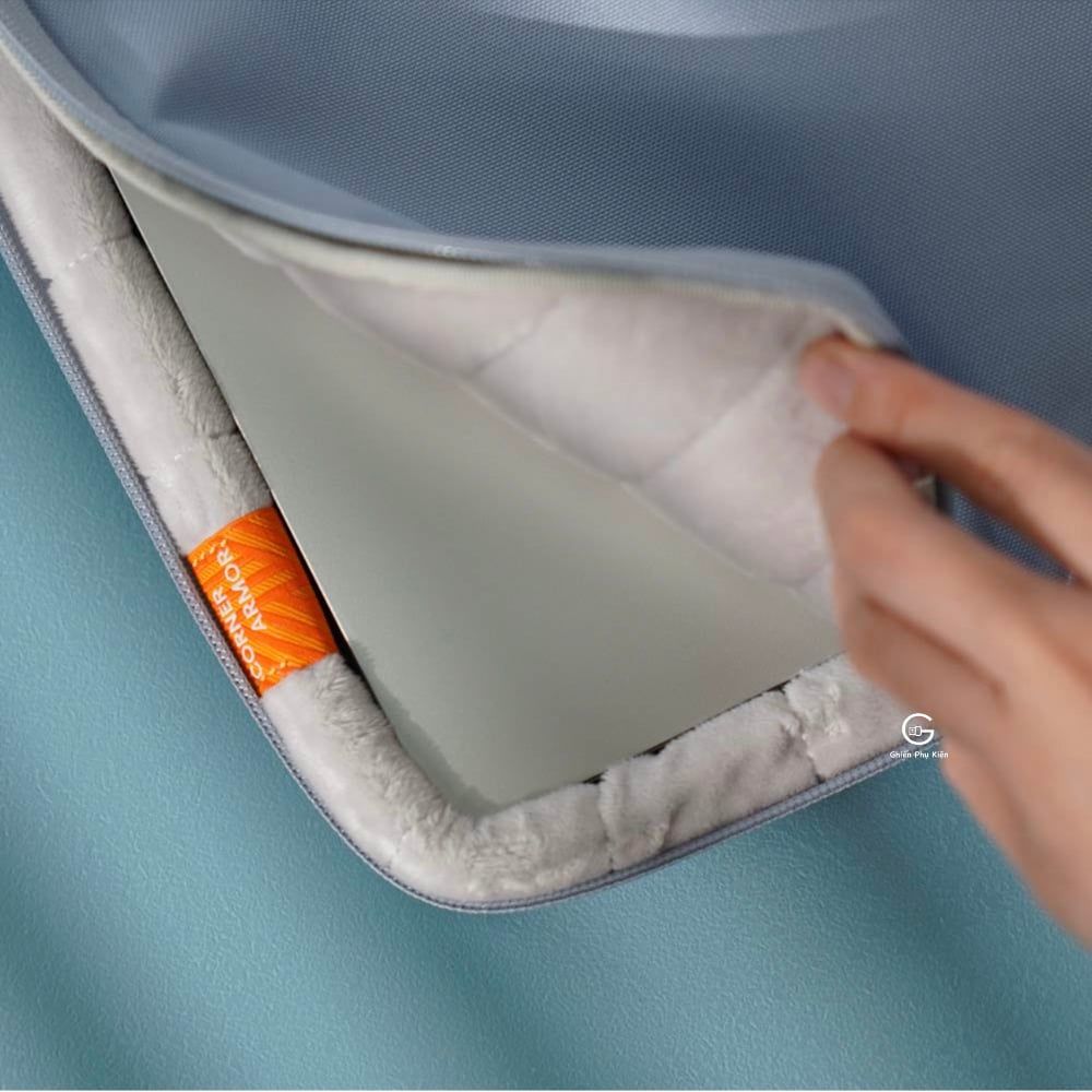 – Sử dụng chất liệu bên ngoài bằng Polyester kháng nước, đặc biệt trang bị thêm lớp mood gợn sóng đẹp mắt giúp tăng sự đàn hồi, bảo vệ hoàn hảo chống va đập và trầy xước cho máy tính.