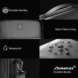 – Chất liệu 600D Polyester chống nước, khóa kéo YKK, khóa, phần nhựa cứng DuraFlex vô cùng bền bỉ