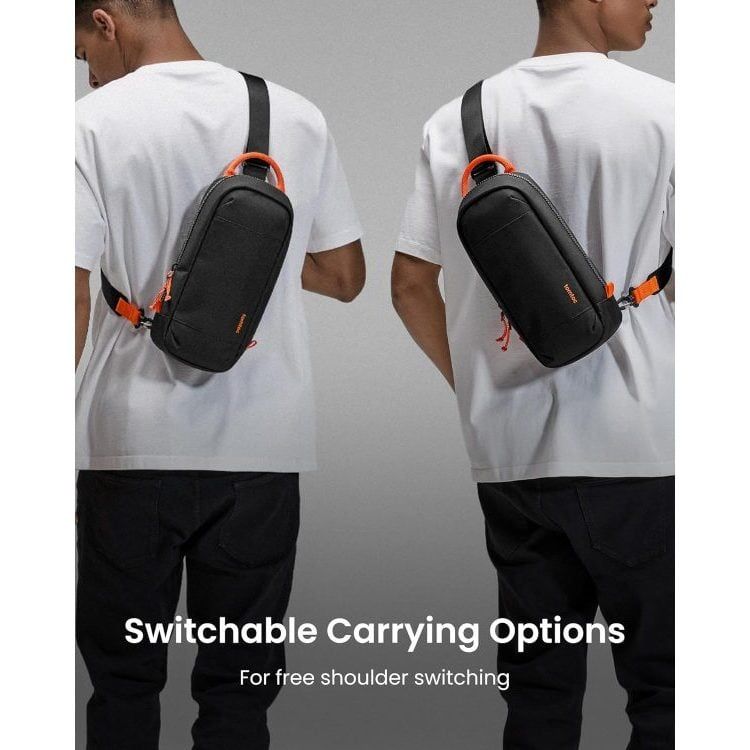 Hai móc khóa dưới đáy túi cho phép bạn chuyển đổi linh hoạt giữa đeo vai trái và phải. Thiết kế mở vỏ sò bán cứng giúp truy cập nhanh thiết bị, phù hợp khi bạn di chuyển, đi chơi hay thư giãn cùng bạn bè.