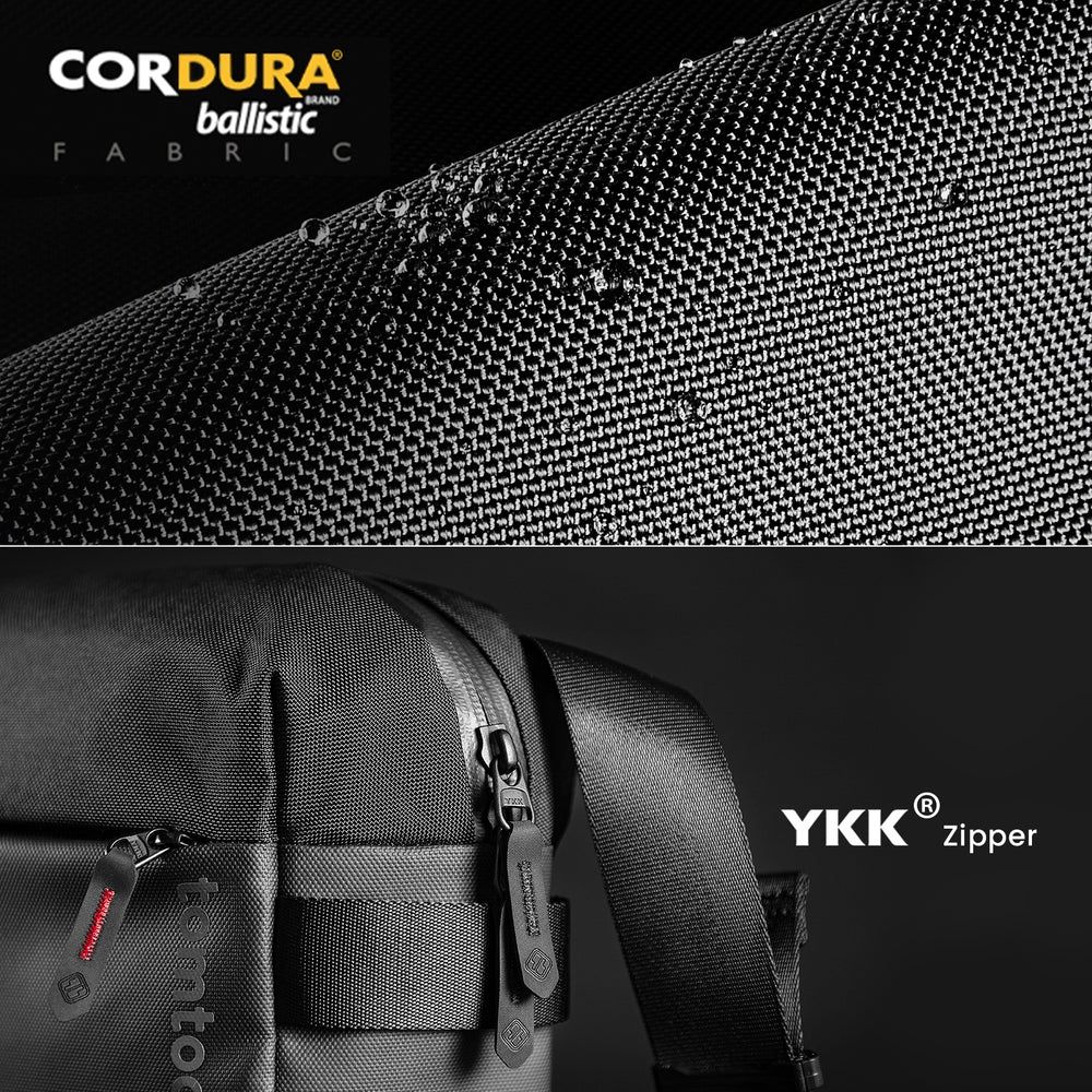 Bên ngoài được làm bằng Cordura Ballistic Nylon. Cực kỳ chắc chắn, nhẹ và chống nước với độ bền cao. Khóa kéo YKK để sử dụng an toàn và lâu dài.