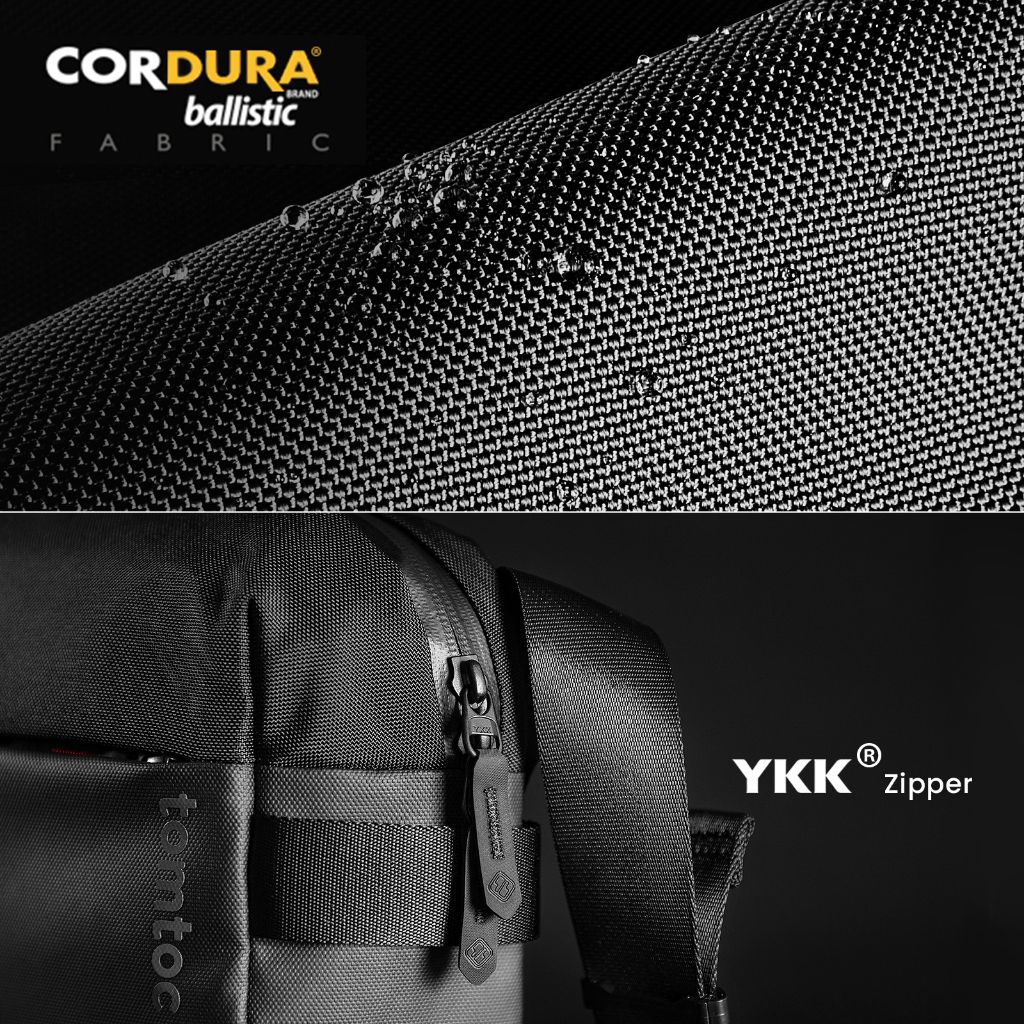 Bên ngoài được làm bằng Cordura Ballistic Nylon. Cực kỳ chắc chắn, nhẹ và chống nước với độ bền cao. Khóa kéo YKK để sử dụng an toàn và lâu dài.