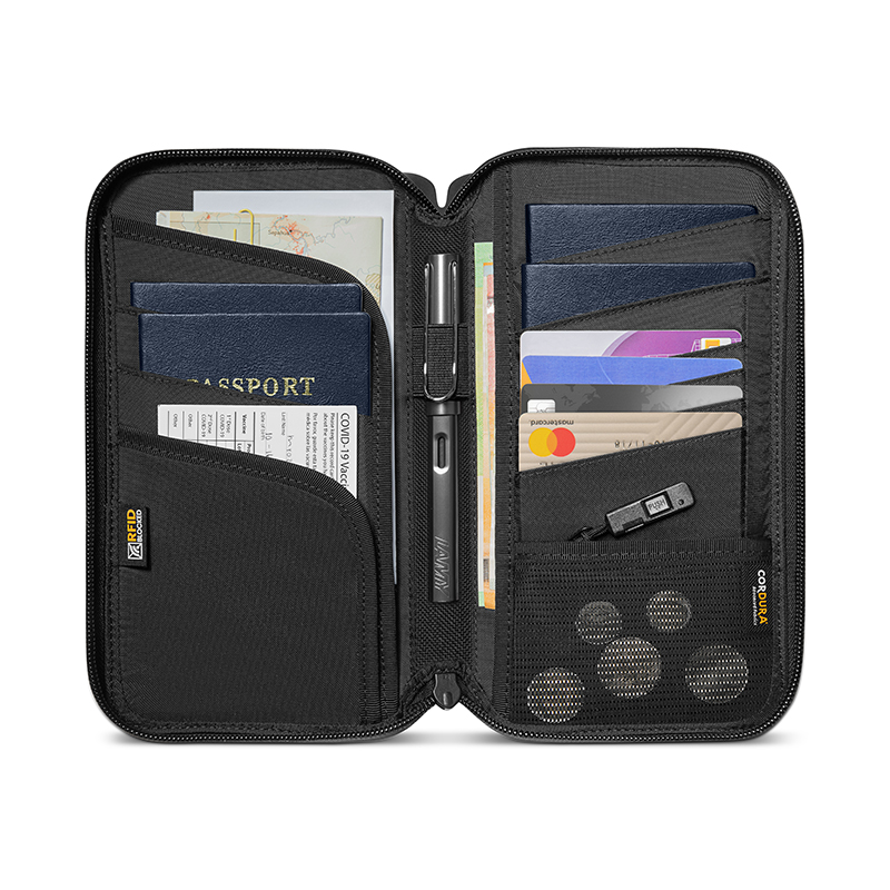 Ví hộ chiếu tomtoc H01 có thể chứa đến 6 hộ chiếu (4 khe đặc biệt cho hộ chiếu + 2 khe rộng cho tiền mặt/văn kiện), 4 thẻ tín dụng và các tài liệu du lịch. Nó cũng bao gồm một khe cắm bút du lịch bên trong, một ngăn để Giấy chứng nhận tiêm vắc-xin với khe Air ẩn, một túi đựng tiền xu với khe cắm SIM Card, và một cây đẩy SIM Card. Ngoài ra, có một ngăn ngoài tiện dụng cho Vé máy bay/ Điện thoại di động. Rất lý tưởng để bạn tổ chức tất cả các giá trị du lịch của mình một cách gọn gàng và thuận tiện trong suốt hành trình.