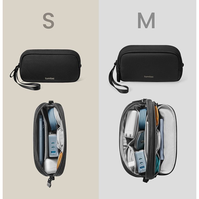 Kích thước Trung bình đủ rộng cho Bộ sạc Macbook/Laptop, có các ngăn kép để sắp xếp tuyệt vời, trong khi Kích thước Nhỏ được khuyến nghị cho người dùng điện thoại thông minh để lưu trữ các thiết bị công nghệ một cách hiệu quả. Thông số kỹ thuật S/M