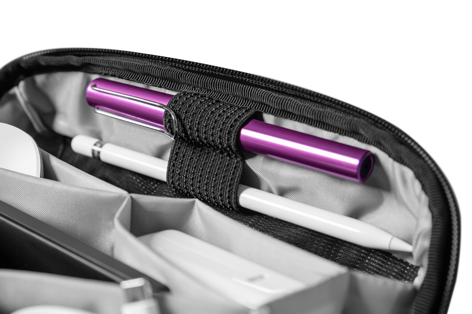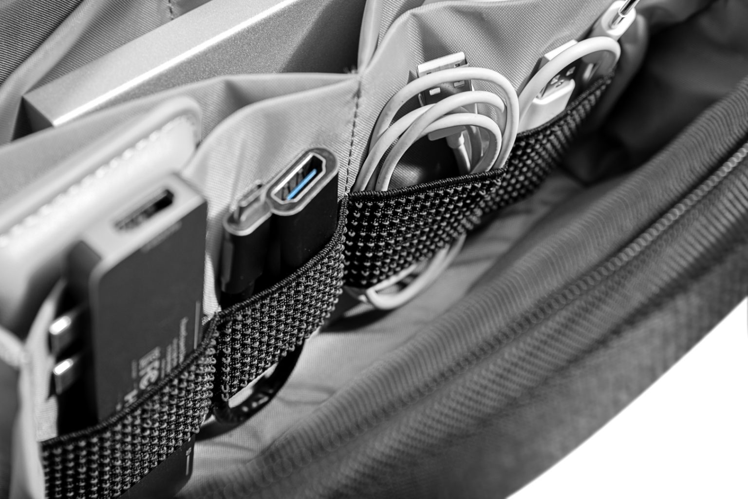 Túi đựng phụ kiện này có tổng cộng 13 ngăn để đựng cáp, đồ dùng hàng ngày hoặc vật dụng cần thiết khi đi du lịch, giúp đồ đạc của bạn được sắp xếp gọn gàng và dễ tìm. Một số vòng dây đeo phụ kiện không trơn bằng thun giữ cho các vật dụng như bút và pin luôn trong tầm tay. Một tấm ngăn có thể tháo rời với một số khe cắm thẻ cho thẻ SD, thiết bị chuyển đổi USB, v.v.