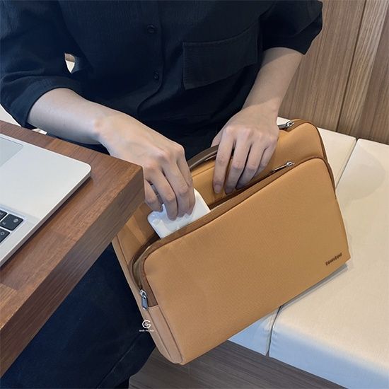 – Chiếc túi chống sốc nhanh chống biến thành một chiếc túi xách thời trăng nhỏ gọn khi cách điệu thêm một quai cầm chắc chắn bằng da PU phía trên giúp tiện lợi hơn cho việc di chuyển.