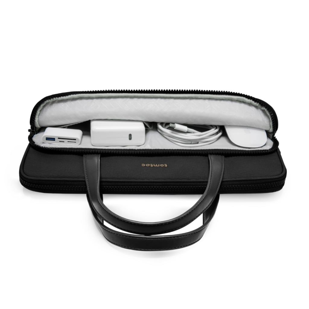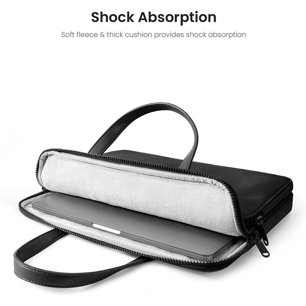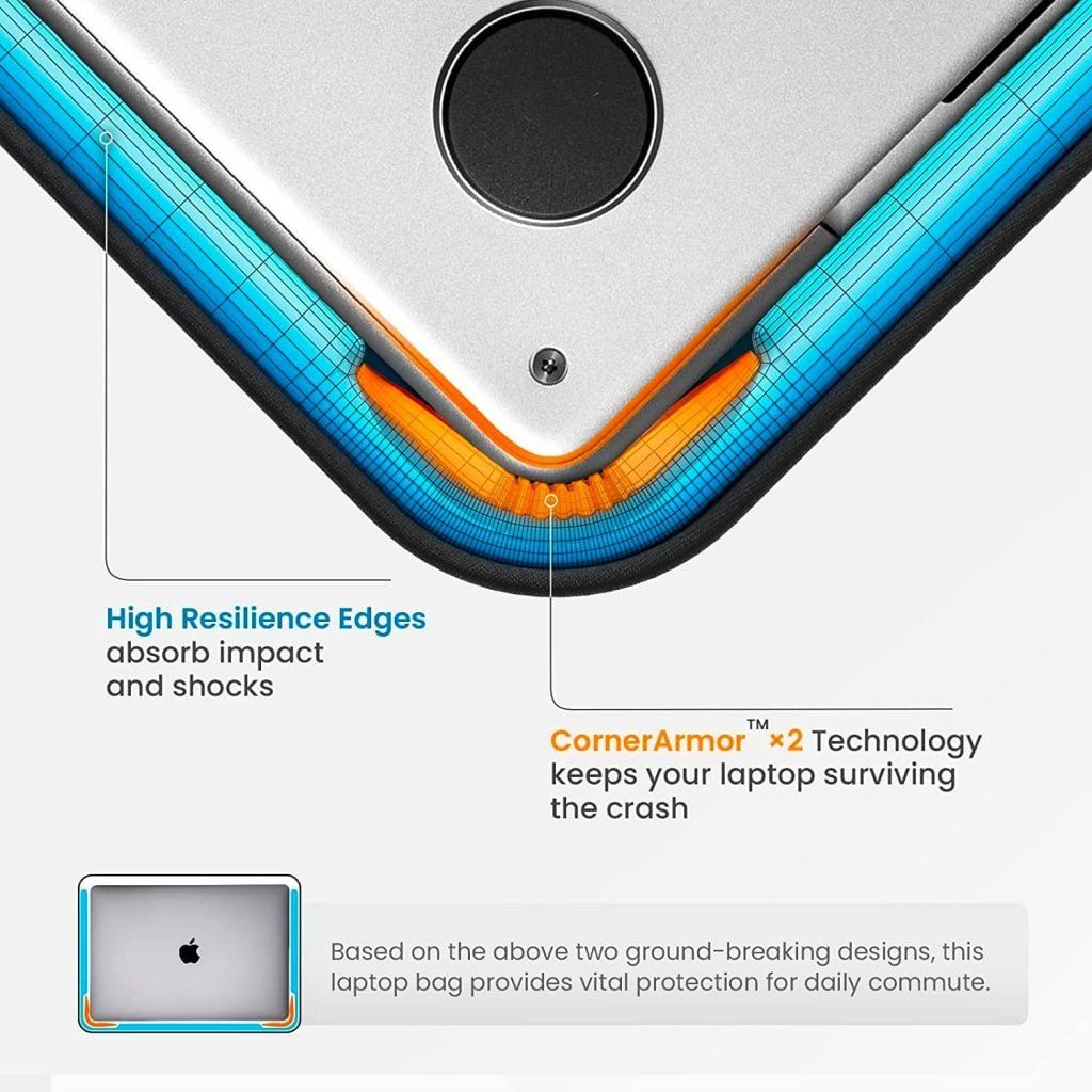 Thiết kế ứng dụng công nghệ sáng chế của Hoa Kỳ [CornerArmor] ở các góc dưới cùng giúp bảo vệ máy tính xách tay của bạn khỏi các tai nạn như một túi khí ô tô. Lớp lót lông cừu mềm mại với đệm dày ở ngăn chính giúp bảo vệ máy tính xách tay khỏi trầy xước và va đập hàng ngày. Vỏ này cung cấp khả năng bảo vệ mạnh mẽ cho các vật dụng cần thiết hàng ngày trong khi vẫn làm nổi bật lên các đường nét tối giản thanh lịch