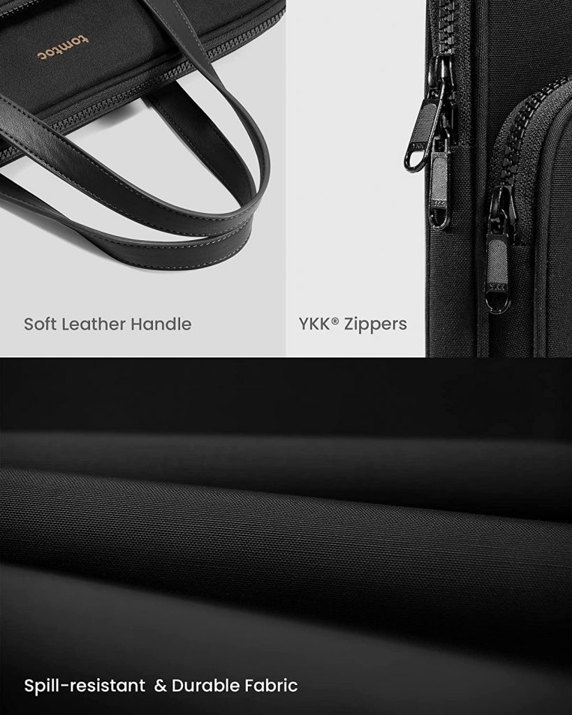 Tay cầm bằng da PU mềm với cảm giác cầm tay dẻo dai mang lại trải nghiệm mang thoải mái; Khóa kéo YKK của Nhật Bản chất lượng giúp kéo lướt nhẹ nhàng, mang lại cảm giác sử dụng tốt hơn và chất lượng bền; Bên ngoài được làm bằng chất cao cấp vải chống nước, không cần phải lo lắng về mưa nhẹ chút nào
